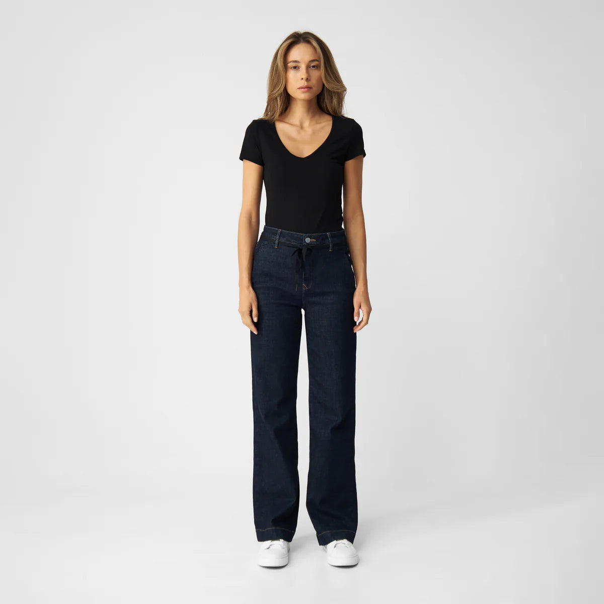 DEW ist der beliebte Wide Leg & High Waist Fit. Typisch für diese moderne Palazzo-Passform ist die weit geschnittene Beinform. Dieser zeitlose Look wird mit einer Kordel als Gürtel ergänzt, kann muss aber nicht ; -). Das Material dieser Variante besteht aus einem angenehm weichen Bio-Baumwollmix und bleibt durch einen hochwertigen Stretchanteil immer in Form.